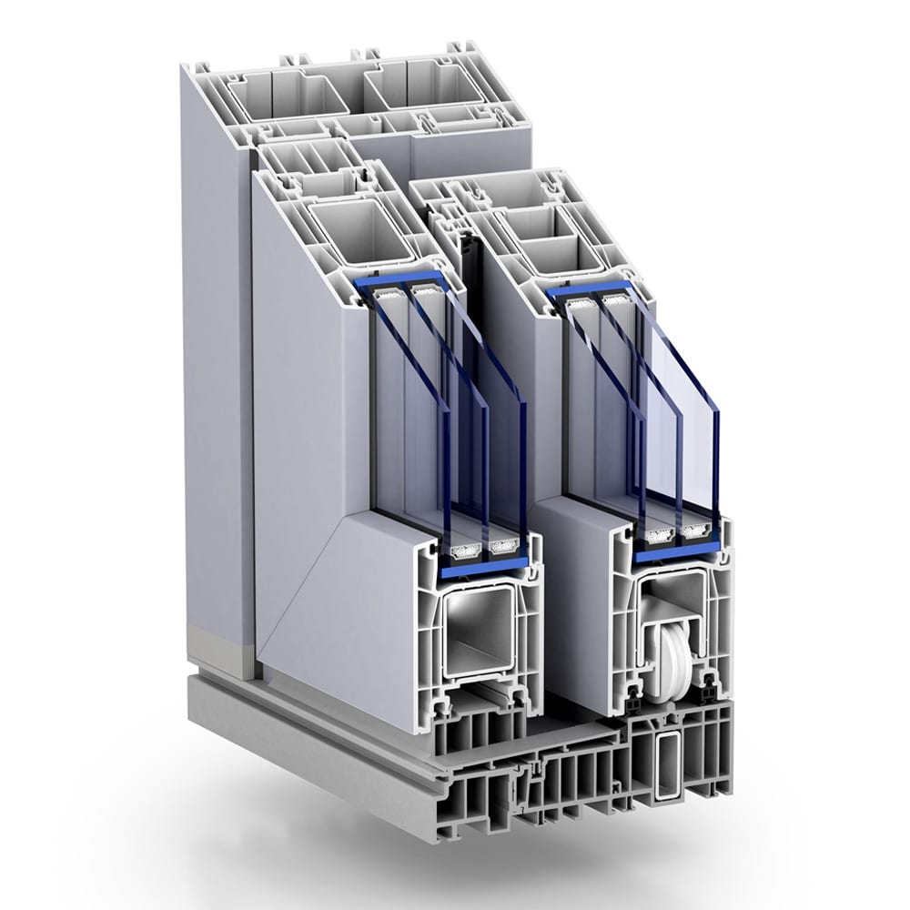 PremiDoor 76 ist ein hoch wärmegedämmtes Hebe-Schiebetürsystem mit 76 mm Bautiefe und einer Fünfkammer-Konstruktion in flächenbündigem Design. Die sehr schlank anmutende Linienführung mit einer Flügel-Ansichtsbreite von nur 100 mm besitzt einen eleganten Charakter.